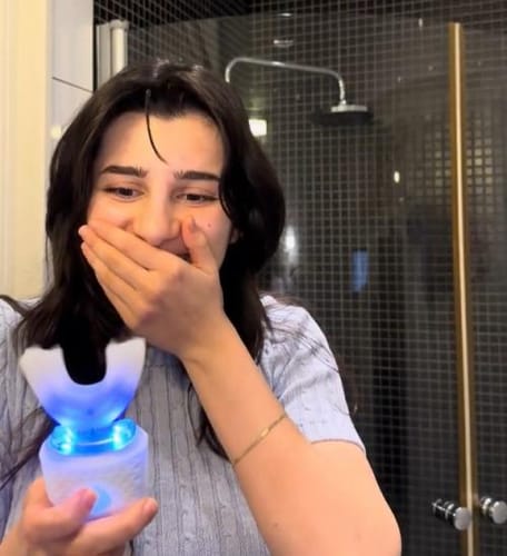 I wasn't sure if it was doing anything because it's so comfortable, and I wasn't sure... But the next morning, I felt that my teeth looked cleaner and brighter, at least.