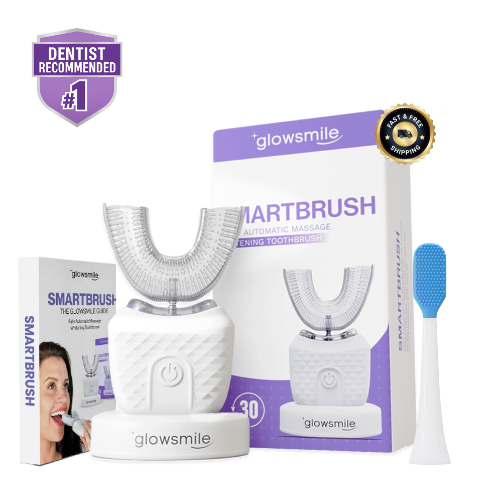 Meet the GlowSmile™ Smartbrush — an ultrasonic toothbrush that delivers a deep, even clean in seconds. Its soft U-shaped mouthpiece and gentle ultrasonic technology clean every tooth at once — top and bottom — for a consistent, dentist-fresh result every time.